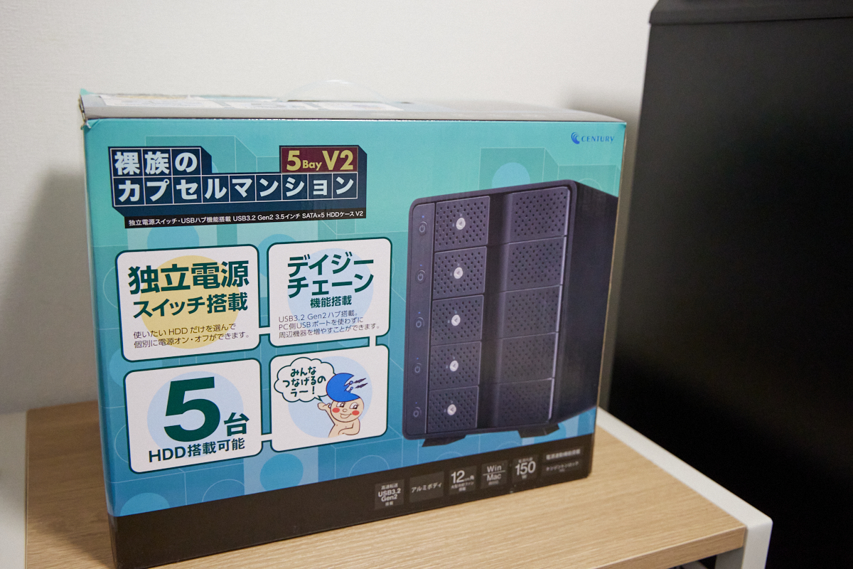 バルクのHDDを購入するにあたり、どうせならと複数ディスクが収容可能なケースが欲しくなり、裸族のカプセルマンションを購入した次第である。私にとって人生初めてのマンション購入である。